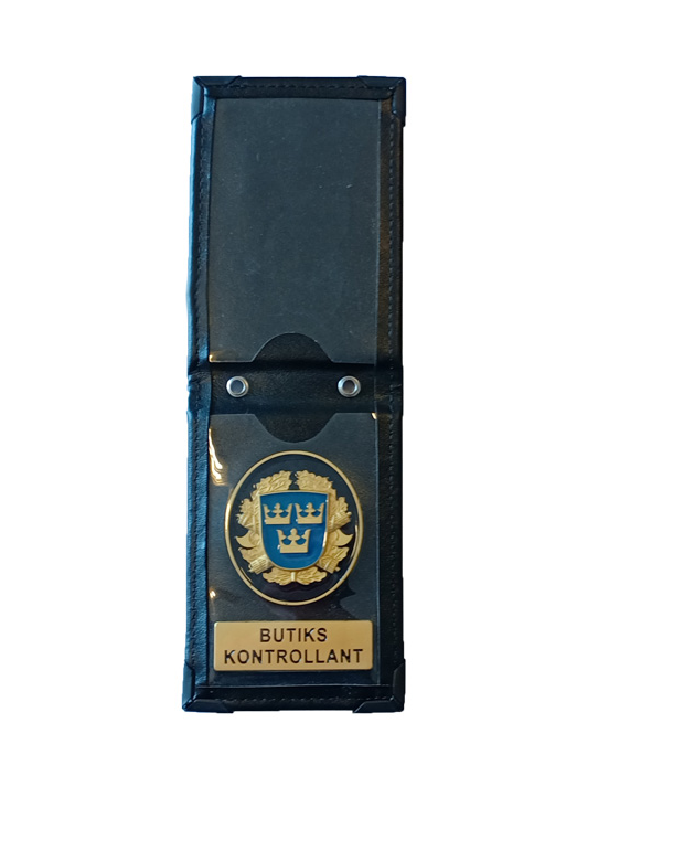 Detta är ett nytt specialtillverkat ID-fodral vars ändamål är att skydda Ert tjänstekort, id-kort eller körkort. Det är tillverkat av de bästa material som går att uppbringa på den internationella marknaden. Det går precis som polisens senaste modell av ID-fodral att hänga i en kulkedja diameter 3,7 mm eller liknande runt halsen. Två öljetter är monterade för detta ändamål, kedja ingår inte. I facket som är anpassat till tjänstekort passar alla ID-kort och liknande som har samma storlek (H: 54 mm x B: 86 mm) som ett körkort.