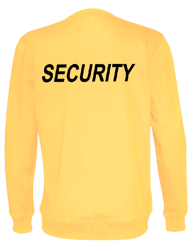 Sweatshirt med texten Security tryckt på både fram och baksida i svart.