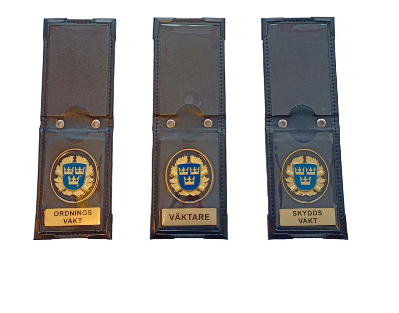 Detta är ett nytt specialtillverkat ID-fodral vars ändamål är att skydda Ert tjänstekort, förordnande eller körkort. Det är tillverkat av de bästa material som går att uppbringa på den internationella marknaden. Det går precis som polisens senaste modell av ID-fodral att hänga i en kulkedja diameter 3,7 mm eller liknande runt halsen. Två öljetter är monterade för detta ändamål, kedja ingår inte. I facket som är anpassat till tjänstekort passar alla ID-kort och liknande som har samma storlek (H: 54 mm x B: 86 mm) som ett körkort.