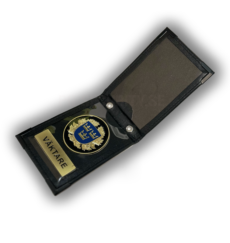 Detta är ett nytt specialtillverkat ID-fodral vars ändamål är att skydda Ert tjänstekort, id-kort eller körkort. Det är tillverkat av de bästa material som går att uppbringa på den internationella marknaden. Det går precis som polisens senaste modell av ID-fodral att hänga i en kulkedja diameter 3,7 mm eller liknande runt halsen. Två öljetter är monterade för detta ändamål, kedja ingår inte. I facket som är anpassat till tjänstekort passar alla ID-kort och liknande som har samma storlek (H: 54 mm x B: 86 mm) som ett körkort.