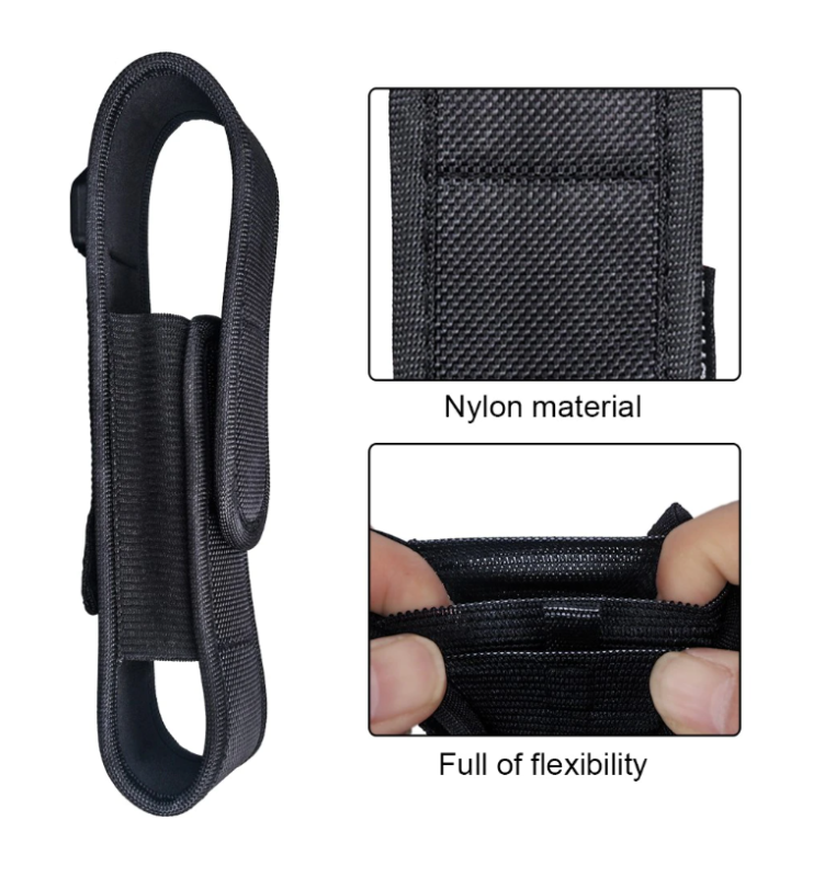 Tillverkad av slitstarkt nylonmaterial, skydda din ficklampa. Kardborrestängning gör den lätt att öppna och stänga, gör även det lätt att justera.