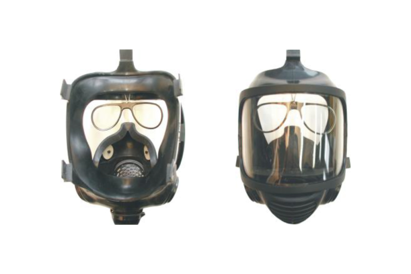 The mask allows use of special spectacles which can be easily mounted into a rubber carrier on the internal part of the facepiece.