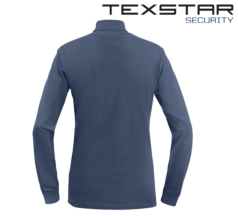 Polotröja i 100 % bomull. Smalt ribbad polokrage och ärmslut. Den blå färgen är godkänd NCS 7015-R90B enligt Polisens FAP 670-1 (PMFS 2017_12).