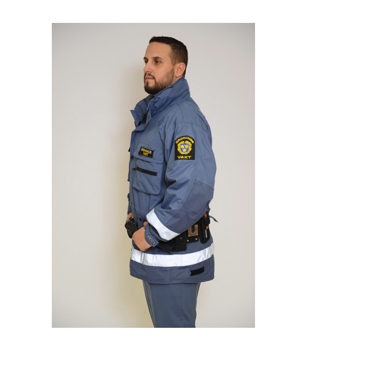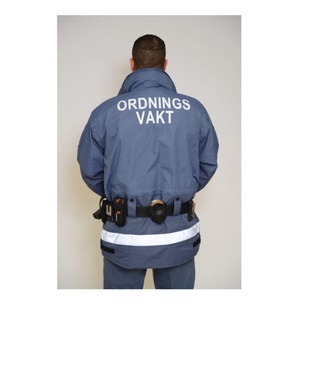 Jackan levereras med funktionsbeteckning på bröst, Ov emblemet på vardera ärm samt Ordningsvakt tryckt på ryggen.