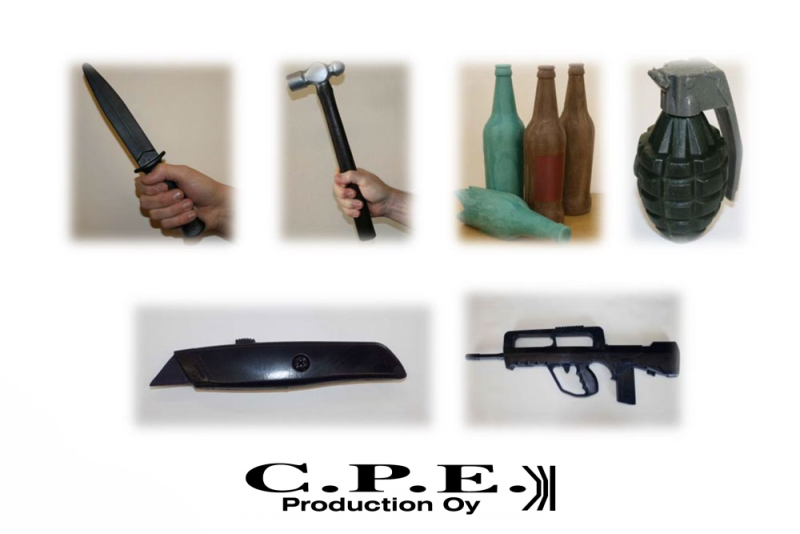 Stryktåliga attrapper i gummi, för realistisk träning utan skador.