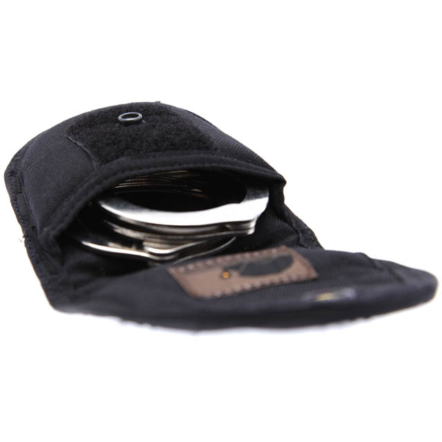 En lätt ficka för handfängsel som hindrar skrammel och som är enkel att använda, montera och demontera på utrustningsbältet