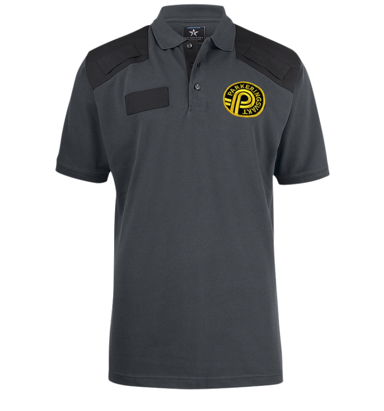 Namnhållare höger bröst samt kardborre på vänster sida. Köp till (art nr 353-899) Parkeringsvakts Emblemet.