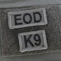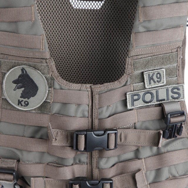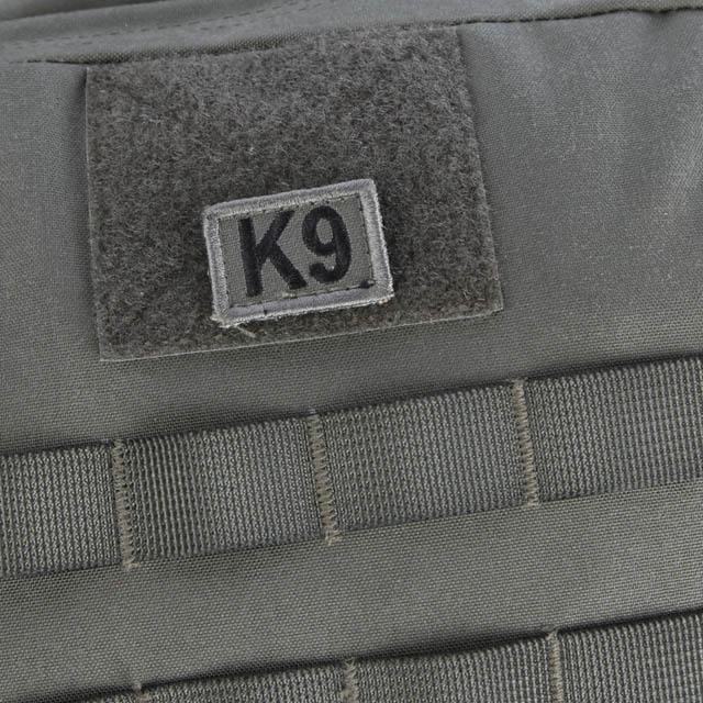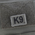 Ett grått och svart märke med texten K9, för hund samt hundförare. 35 x 25 mm.
