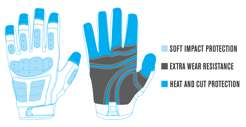 • Extra läderförstärkning i handflatan för ökat skydd och hållbarhet.