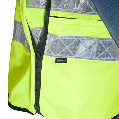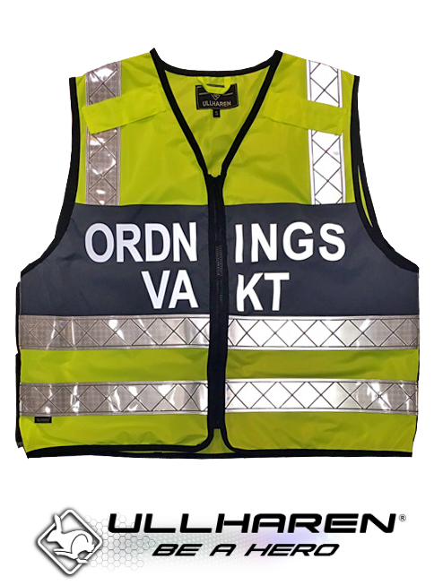 Reflexväst av mycket god kvalité för ordningsvakter med reflexer och reflextryck på bröstet och ryggen. Justerbar storlek med blixtlås på sidorna som drar in 10 cm och ger västen en bättre passform när man har tunnare klädsel. Västen har en stramare passform än de ordinanerie västarna från exempelvis Reflectil. Finns i storlekarna XS - 4XL.