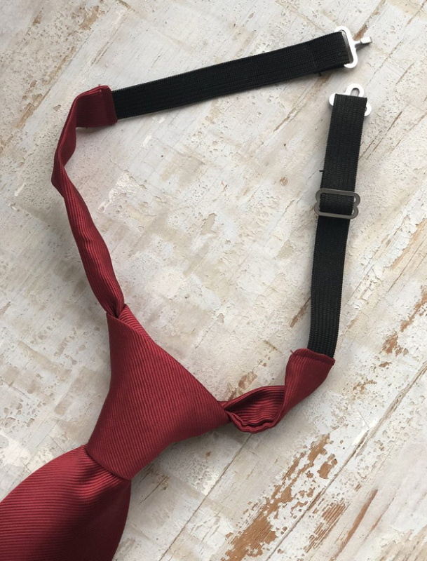 Färdigknuten säkerhetsslips med resår och hake.