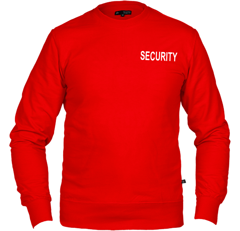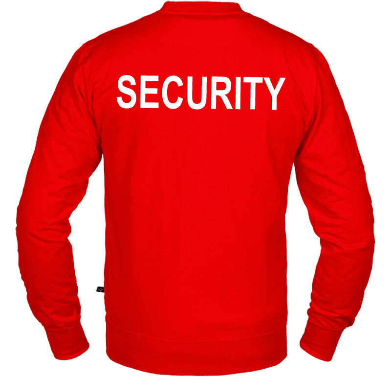 Sweatshirt med texten Security tryckt på ryggen i vit samt ett litet tryck på vänster bröst.