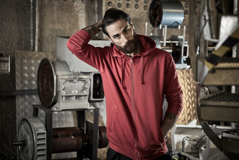 Klassisk hoodjacka med fickor, hel dragkedja som går upp en bit i kragen, öglad insida.