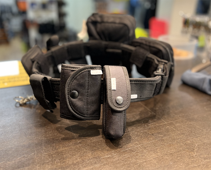 Handsk hållare, håller handskarna lodrätt. Tryckknapp med två olika positioner beroende på hur kraftiga handskarna är. Hållaren har en lite ficka i sig för tex extra fängsel nyckel. Har velcro som fäster i utrustnings bältet så att det inte rör sig.
