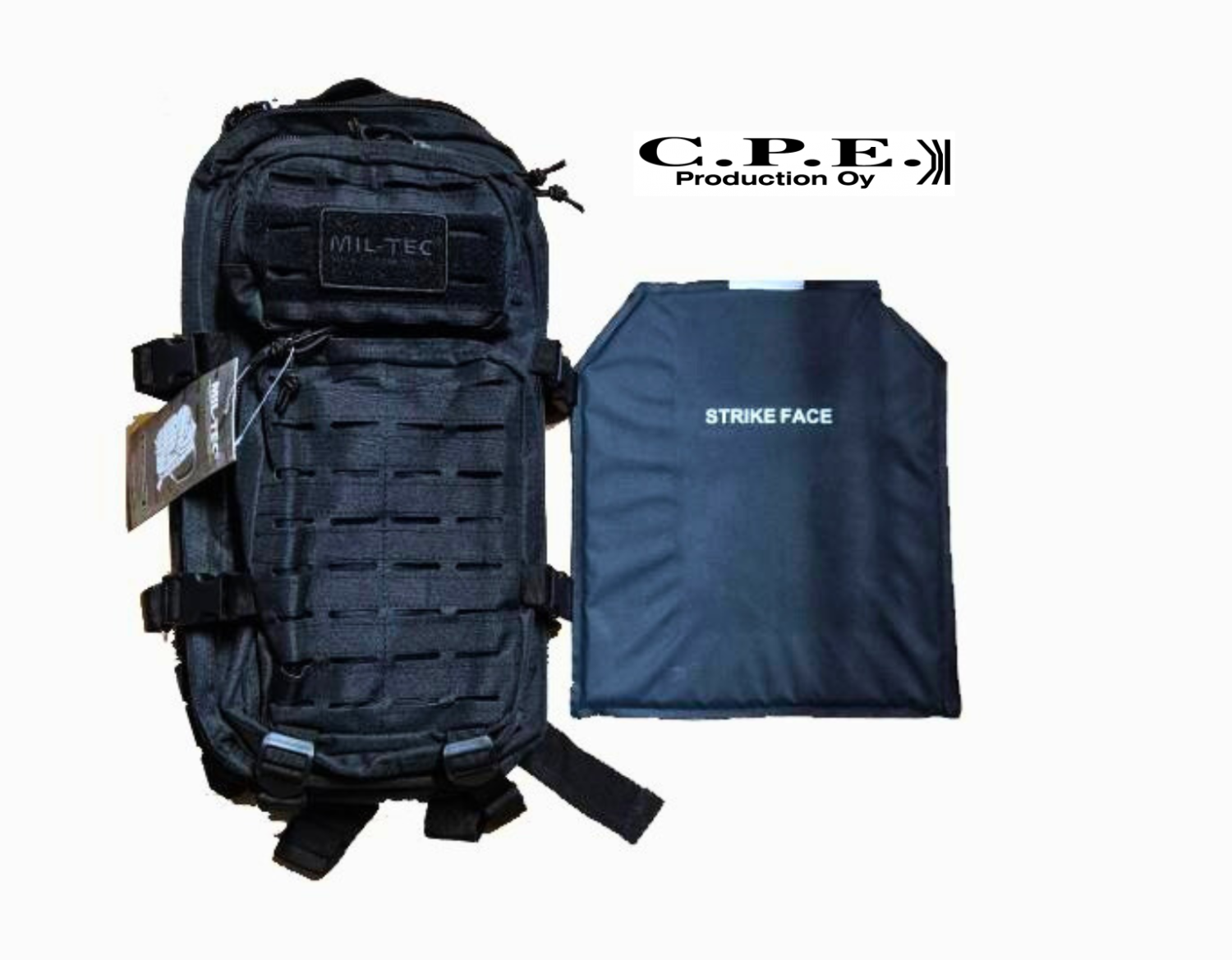En lätt och smidig skyddspanel som man kan få ner i ryggsäcken för att kunna göra ryggsäcken säker ifrån pistolskott.