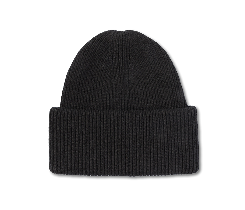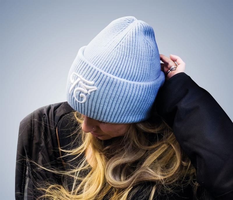Trendig ribbstickad mössa med hög uppvikt kant. Perfekt för härliga vinterdagar.