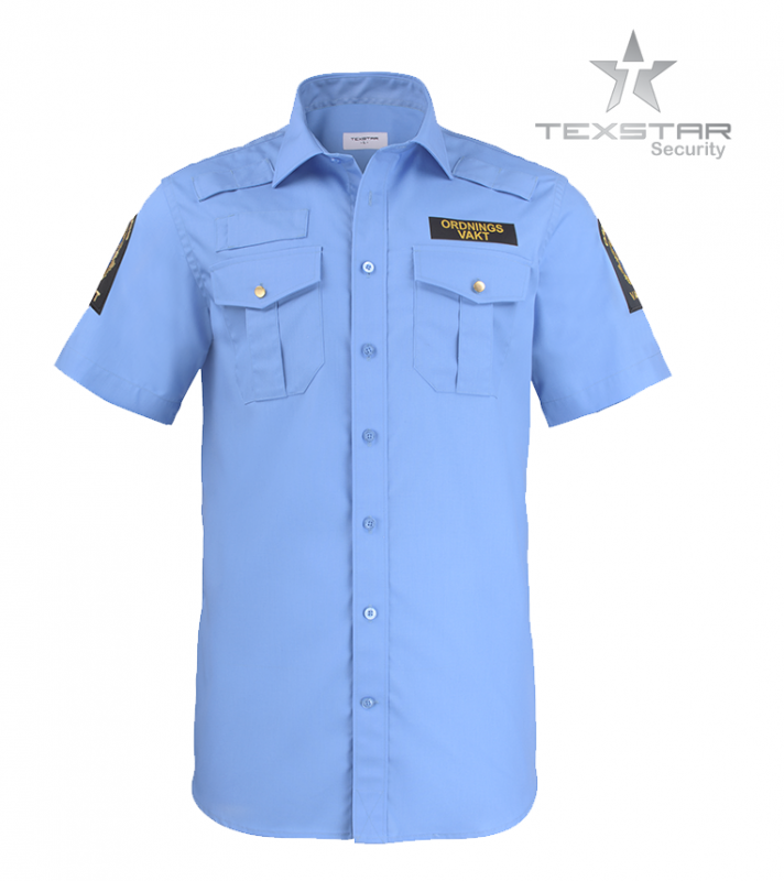 Snygg skjorta med modern krage och två bröstfickor med guld knapp. Vänster bröstficka har öppning för penna. Monofonhållare på höger och vänster axel och namnhållare höger bröst. Ordningsvaktsemblem på båda ärmar och med funktionsbeteckning vänster bröst. Finns i snyggt skuren dam- och herr modell. Den blå färgen är godkänd NCS 2142-R83B enligt Polisens FAP 670-1 (PMFS 2017_12).