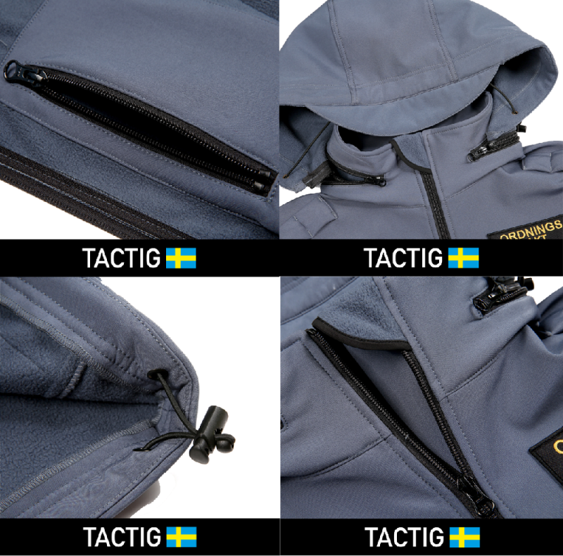 3-lagers softshelljacka liknande svenska polisens modell med vatten- och vindtäta egenskaper och utmärkt andningsförmåga. Jackan är tillverkad av vävt stretchmaterial på utsidan som ger utomordentlig slittålighet och med insida av fleece för extra komfort.