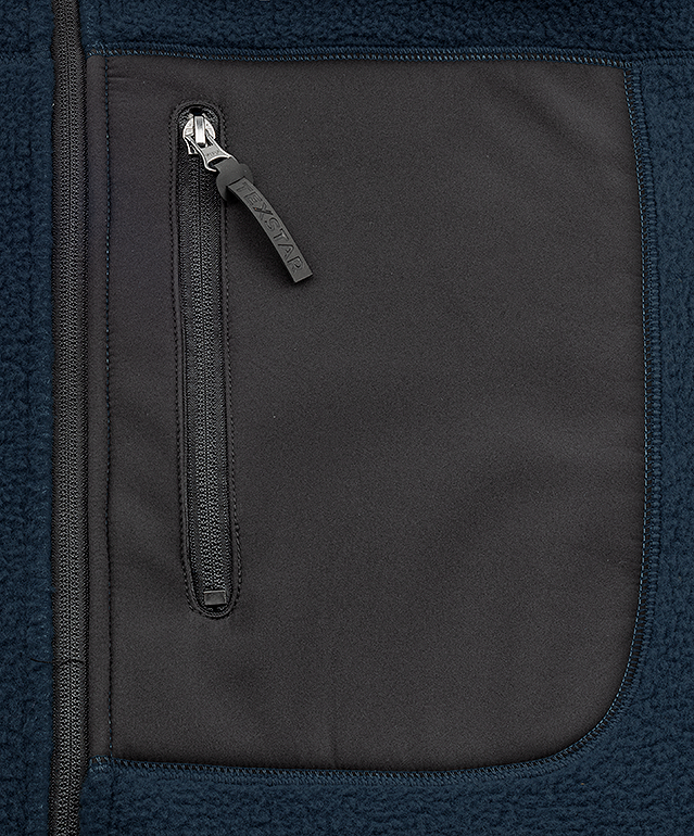 Tröjan är detaljrik med en bröstficka med dragkedja och två sidofickor.
