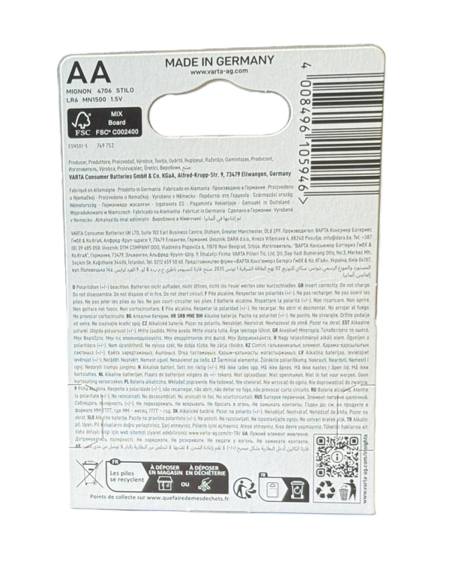- ”Made in Germany - made to last”, säkerställd VARTA varumärkeskvalitet
