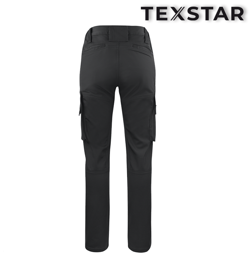 Rejäl, tålig byxa i skön Stretch Twill med rörlig 4-vägsstretch över bak, fram, stuss samt grenkil. Smart benficka med dragkedja, mindre ficka med ficklock med plats för stor telefon samt pennficka på höger ben. Dolda bakfickor i chinosstil, knäfickor för extra skydd och en fraktsedelficka med inbyggd tumstocksficka på höger sida. Snygg modern profil med smal benvidd.